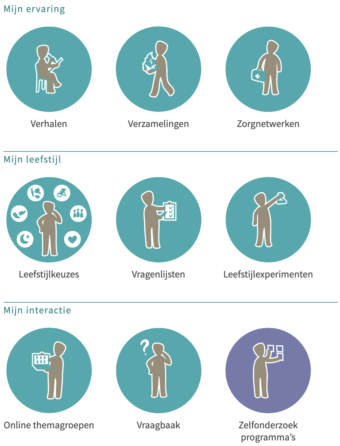 Wanneer je geconfronteerd wordt met ziekte ga je opnieuw kijken naar gezond leven. “Doe ik wel het goede? Wat zou ik anders kunnen doen? Waar heb ik anderen voor nodig?”. Ieder mens is uniek en wat voor de één werkt, hoeft voor de ander niet passend zijn. Zelfonderzoek kan je helpen bij het werken aan gezond leven. We onderscheiden verschillende tools waarmee je eigen ervaringen en leefstijl kunt onderzoeken. Zie de video voor een korte introductie. Na registratie en inlog kun je alle tools gebruiken. Sinds medio juni 2023 kun je meedoen met het zelfonderzoekprogramma Ondergewicht en najaar 2023 kun je ook weer starten met het vernieuwde zelfonderzoekprogramma Gezond Leven.